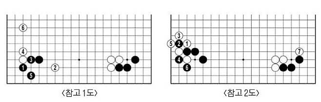 흑3·7·9 세 수로도 10집 넘는 집을 가졌다. 신진서는 손을 왼쪽으로 돌려 11에 붙였다. 귀를 차지하는 데는 <참고 1도> 흑1이 더 쓸모가 있지만 백2를 부르기 쉽다. 백14로 가만히 늘었다. <참고 2도> 백1로 젖히면 흑이 귀를 크게 갖는다.