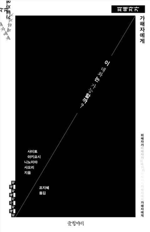 | ▲ <피해자가 가해자에게> 겉표지 <피해자가 가해자에게> 겉표지. 회복적 사법의 관점의 가해자들 치료 프로그램의 일환으로 성폭력 피해자와 가해자들의 왕복 서신 및 대화 프로그램을 진행한 기록을 담고 있다. |