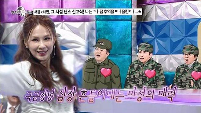 방송에 앞서 공개된 영상에는 '군통령'이라 불리는 채연과 프로미스나인 이채영이 그때 그 시절의 댄스 신고식 무대를 재현하는 현장이 담겨 있다.