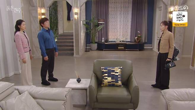 1일 방송된 KBS 2TV 일일드라마 '붉은 진주'에서는 김단희(박진희 분)와 박민준(김경보 분)이 클로이(남상지 분)를 몰아내기 위해 표절 고발 방송을 사주한 최유나(천희주 분)와 고발남을 납치한 대가로 주식을 넘겨 받으려던 오정란(김희정 분)의 증거를 찾아 압박했다.