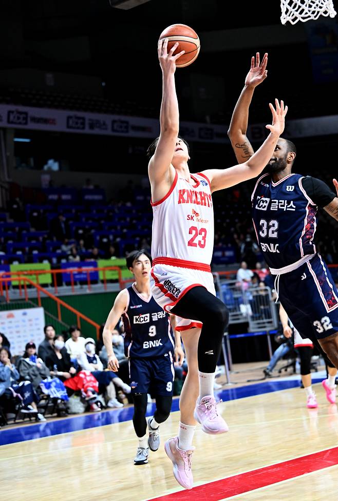 만약 이날 승리해 2위 정관장을 1게임 차로 추격하는 SK로서는 4강 직행(2위) '역전쇼'가 허황된 꿈은 아니었다. 5라운드까지 정관장과의 맞대결에서 3승2패 우위인 가운데 정규리그 최종전을 정관장과 치르기에 더욱 그랬다. 3위로 플레이오프에 진출하면 6강에서 껄끄러운 상대 KCC를 또 만나야 하는 부담도 피할 수 있다.