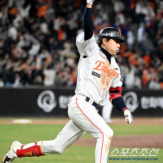 [포토] 동점 스리런 심우준, 8회 6득점 11대11 만든 한화