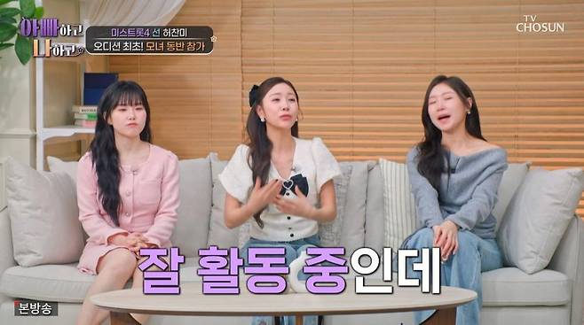 1일 방송된 TV조선 예능 프로그램 '아빠하고 나하고 3'에는 '미스트롯 4'의 진(眞) 이소나, 선(善) 허찬미, 홍성윤이 출연해 경연 이후 달라진 일상과 가족과의 감동적인 사연을 공개했다.