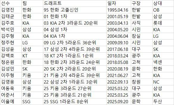 고졸 신인이 프로 첫 안타를 홈런으로 기록한 것은 KBO리그 역대 16번째다. NC 구단 사상 최초다. 원년팀인 두산 베어스와 롯데 자이언츠는 아직 없는 기록이다.