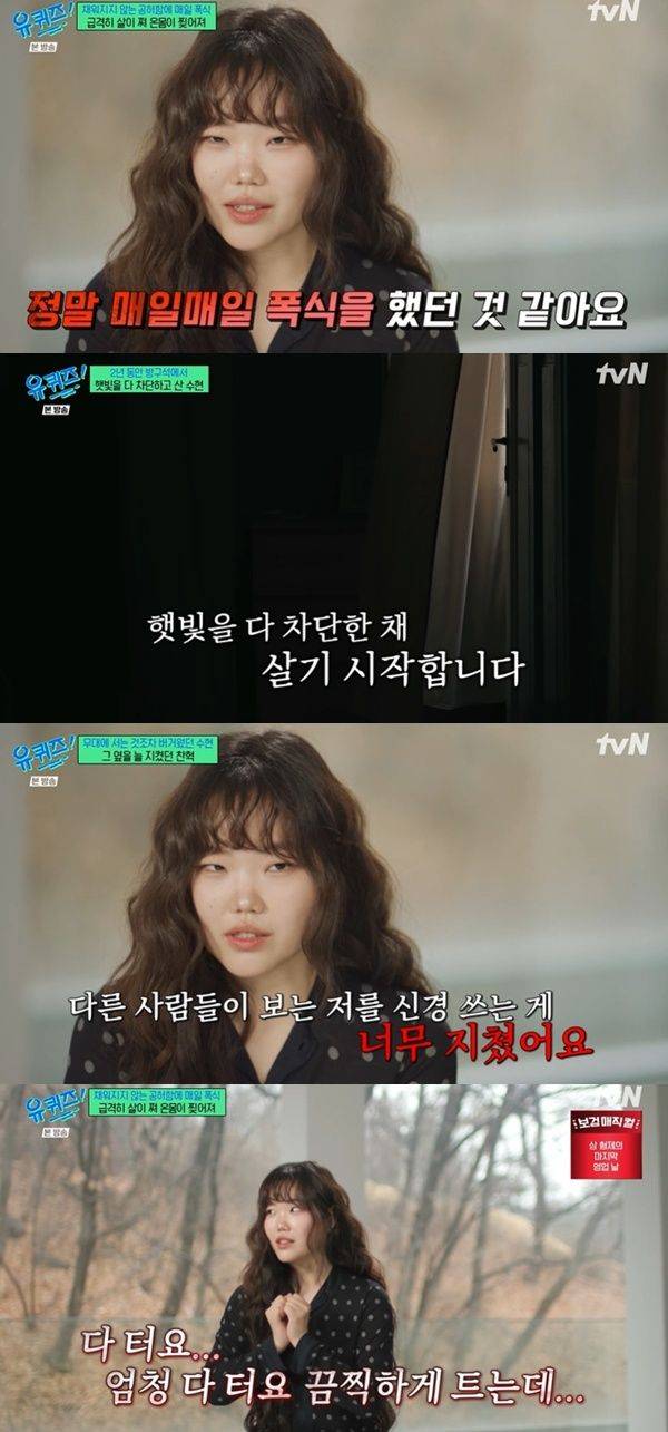 이수현은 "음악 방송에 가면 사람들이 다 말랐기에 저는 항상 살을 빼야 하는 사람이었다. 그때 정신적인 공허함을 채워줄 수 있는 건 음식이 컸다"며 "매일매일 폭식을 했다. 온몸이 다 텄다. 자존감과 자신감이 바닥을 찍고 사람들을 만날 수 없는 상태가 됐다. 대인 기피증이 생겨서 사람들이 저를 쳐다보는 것이 두렵더라"고 고백했다.
