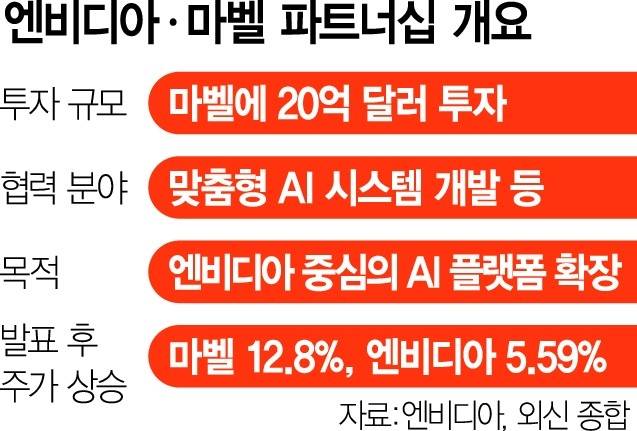 마벨은 아마존 등 초대형 인공지능(AI) 인프라 사업자(하이퍼스케일러)의 맞춤형 AI 반도체(ASIC) 설계를 지원해온 기업으로, 맞춤형 칩 수요 급증에 힘입어 최근 회계연도 매출이 전년 대비 42% 늘어나는 가파른 성장세를 기록했습니다. 양사는 이번 협력을 통해 엔비디아의 칩 연결 네트워크 기술 엔브이링크 퓨전(NVLink Fusion)과 마벨의 맞춤형 AI 반도체를 결합한 AI 시스템 개발에 나섭니다. 마벨이 호환 칩 솔루션을 제공하면, 엔비디아는 중앙처리장치(CPU)와 연결 부품 등 핵심 인프라 기술로 뒷받침하는 구조입니다.