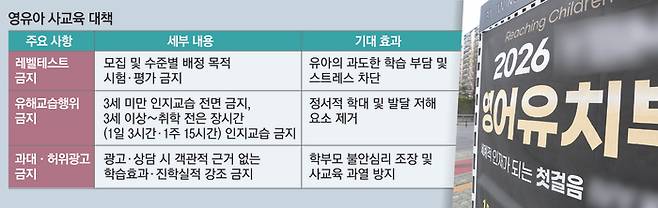 교육부 관계자는 “학습 자체를 막는 것은 아니지만 영유아의 발달 단계에 맞지 않는 과도한 주입식 교육을 규제하자는 의미로 봐달라”고 밝혔다. 교육부는 올해부터 ‘유아 사교육비 본조사’를 매년 실시해 데이터에 기반한 영유아 사교육 맞춤형 정책을 추가로 마련하겠다는 계획이다.