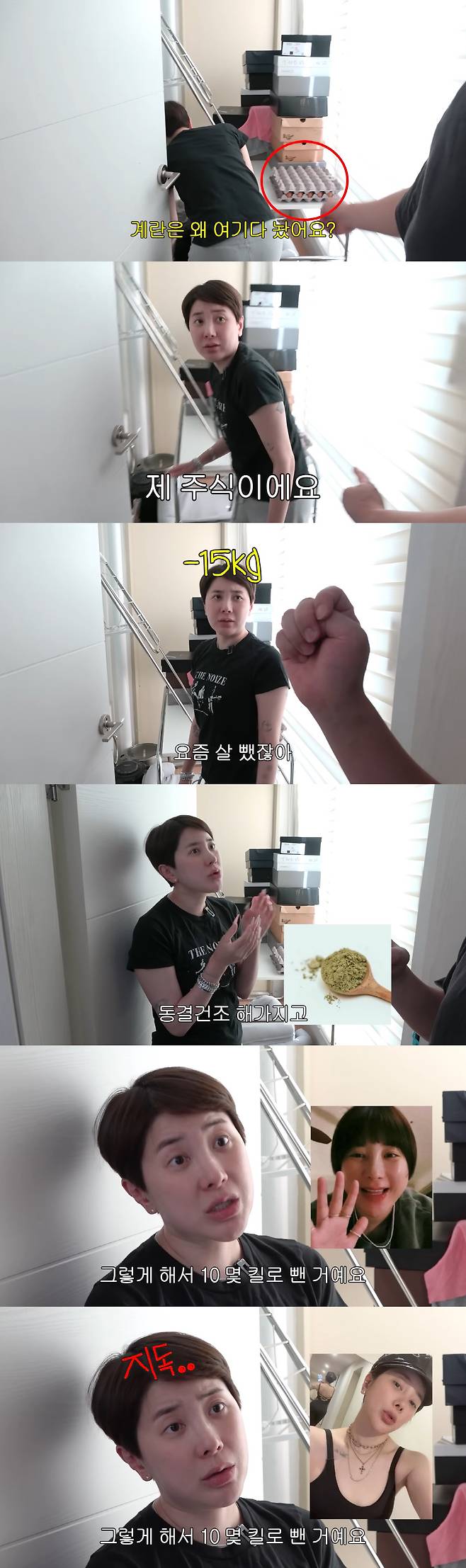 이에 서인영은 "내 주식이다. 요즘 15kg 뺐다"라면서 "햇빛이 들면 안 된다. 구운란이다"라고 말해 눈길을 끌었다. 이어 서인영은 "생식과 동결건조 해서 만든 야채 가루가 있다. 그렇게 해서 15kg 뺐다"라면서 다이어트 당시 식단을 공개했다.