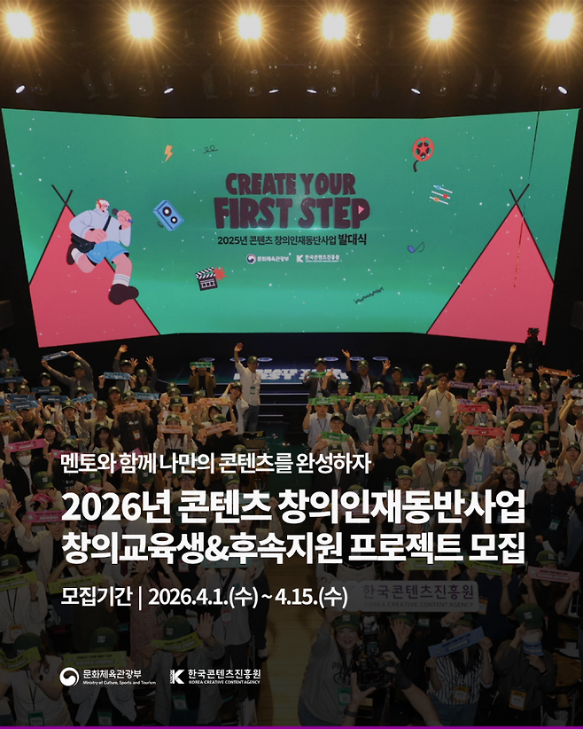 문화체육관광부와 한국콘텐츠진흥원은 오는 15일까지 '2026 콘텐츠 창의인재동반사업' 창의교육생 300명을 모집한다.