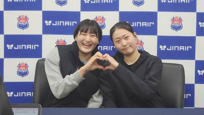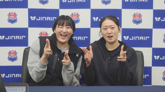 경기 뒤 최가은과 수훈선수로 인터뷰실에 들어선 권민지에게 권총 세리머니에 대해 물었다.