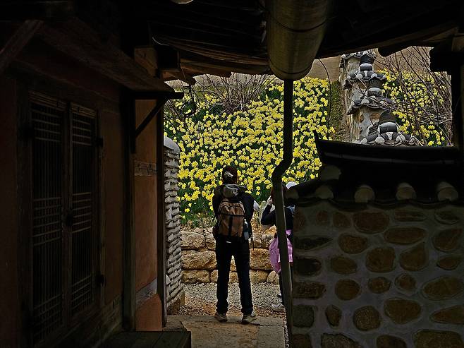 이 무렵 유기방 가옥에선 한 폭의 수채화를 볼 수 있다. 안채와 사랑채의 창 너머로 보이는 뒷마당의 수선화와 장독대는 액자 속 그림을 떠올리게 한다. 이 장면에 자신을 담기 위해 방문객들이 길게 줄을 서 사진을 찍고 있었다.