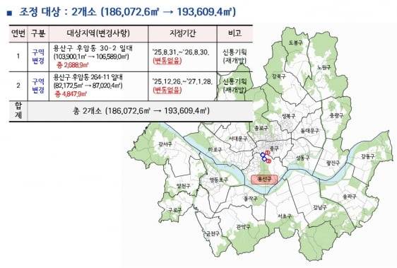 이어 용산구 후암동 30의 2와 264의 11 신속통합기획 주택재개발 2곳은 사업구역 결정 경계에 맞춰 토지거래허가구역 경계를 조정했다.