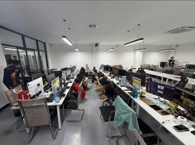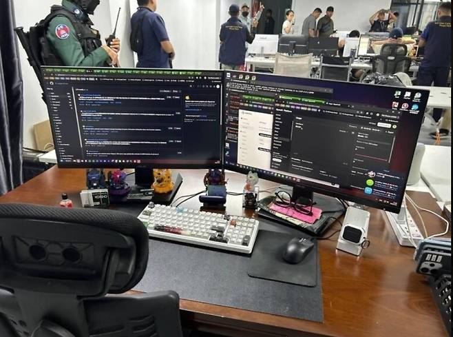 | ▲ 4월까지 완전 척결하겠다고 공언한 훈 마넷 총리의 약속 지켜질까? 지난 3월 31일 프놈펜 경찰청에 의해 검거된 외국인 온라인 스캠 범죄조직 현장 |