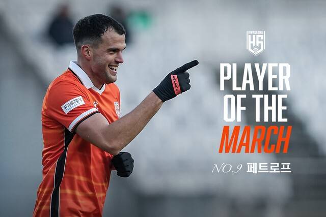 '화성 팬심 49% 훔쳤다' 페트로프, 월간 MVP로 선정 "더 좋은 모습 보여드리겠다"
