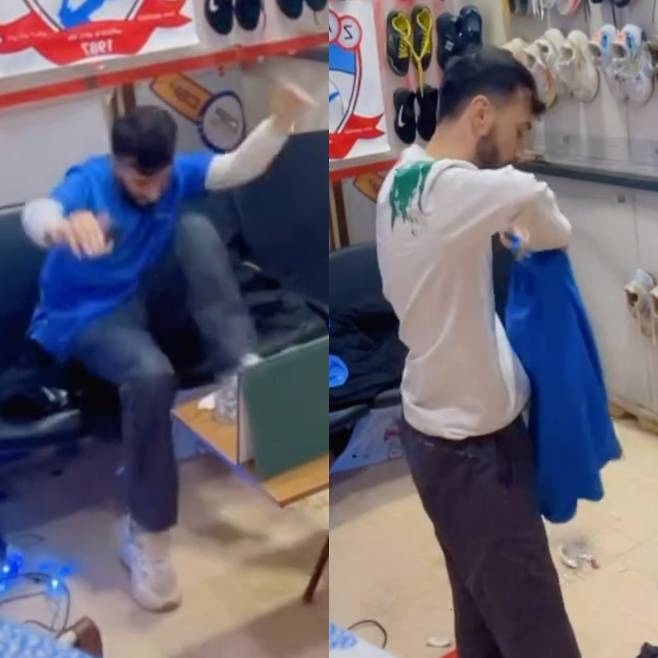 이어 이 팬은 입고 있던 이탈리아 대표팀 유니폼을 벗어 던진 뒤, 유니폼을 아예 찢어 버렸다. 분노를 참지 못한 그는 자신이 앉았던 소파까지 발길질하며 화를 삭이지 못했다.