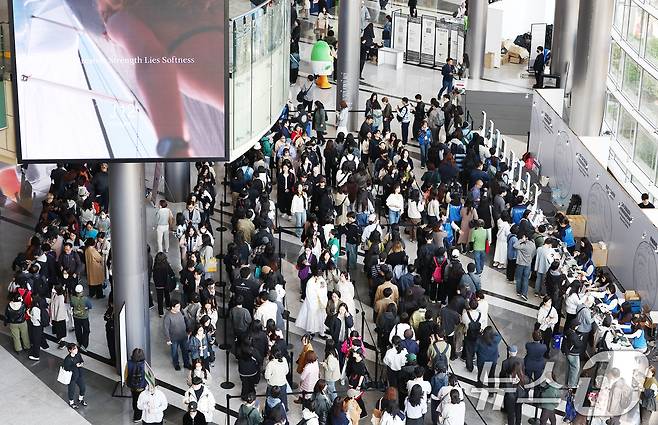 (서울=뉴스1) 김민지 기자 = 2일 오전 서울 강남구 코엑스에서 열린 '2026 서울국제불교박람회 & 제14회 붓다아트페어'에서 관람객들이 입장하기 위해 줄을 서고 있다.