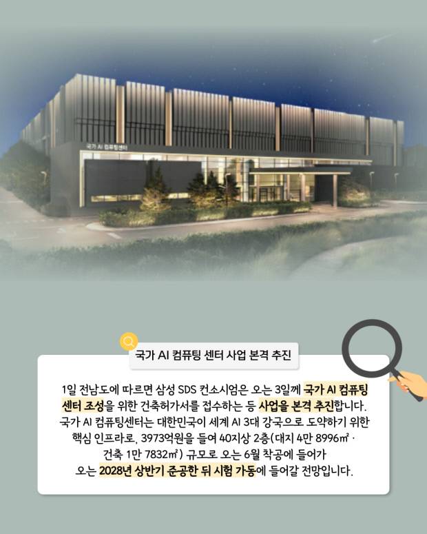 해당 센터는 약 4000억 원 규모로 추진되며 2028년 준공을 목표로 한다. 정부와 민간이 함께 참여하는 특수목적법인을 통해 사업이 진행되고, 국민성장펀드 지원도 더해져 속도감 있는 추진이 예상된다.