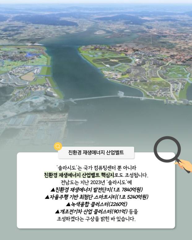 전남도는 이를 바탕으로 스마트시티, 친환경 산업, 정주 여건을 결합한 미래형 도시를 조성해 솔라시도를 AI와 에너지가 결합된 국가 전략 거점으로 육성한다는 계획이다.