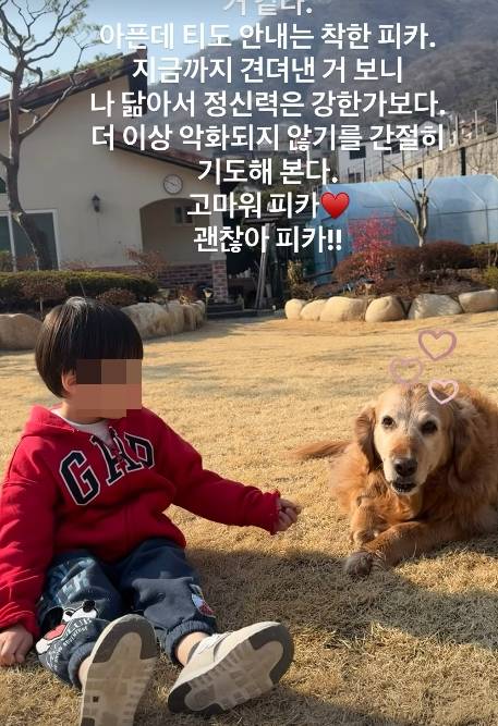공개된 사진 속에는 그의 반려견 '피카'가 어린 아이와 함께 마당에 앉아 있다. 피카는 짙은 갈색 털을 길게 늘어뜨린 모습으로 시선을 모았다. 이어 이상화는 "아픈데 티도 안 내는 착한 피카. 나 닮아서 정신력은 강한가 보다. 더 이상 악화되지 않기를 간절히 기도해 본다. 고마워 피카. 괜찮아 피카"라고 덧붙이며 먹먹함을 더했다.