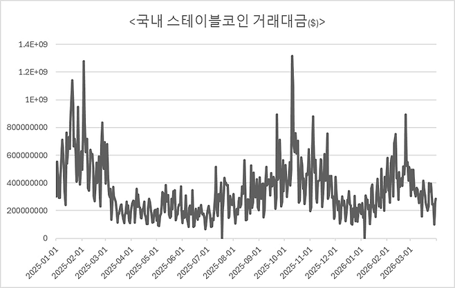 1분기 韓스테이블코인 거래대금 317억弗...전년비 절반 [매일코인]