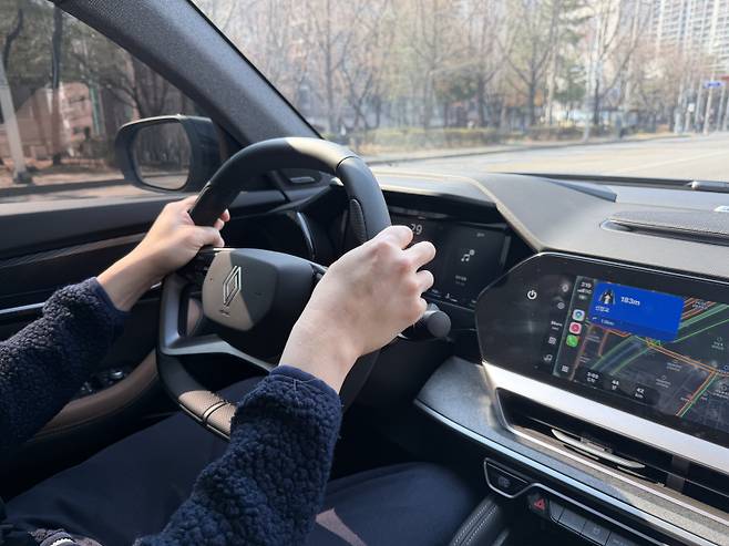 자유로에 올라 속도를 높이자 필랑트가 지향하는 '프리미엄 테크 라운지'의 진가가 드러났다. 2820mm의 휠베이스를 바탕으로 한 실내는 성인에게도 여유로운 공간을 제공하고, 대시보드를 가득 채운 세 개의 12.3인치 openR 파노라마 스크린은 뛰어난 시인성을 자랑했다. 특히 AI 기반 음성 어시스턴트는 "하이 르노, 파주 롯데아울렛으로 가자"는 음성 명령을 단번에 인식해 경로를 설정했다.