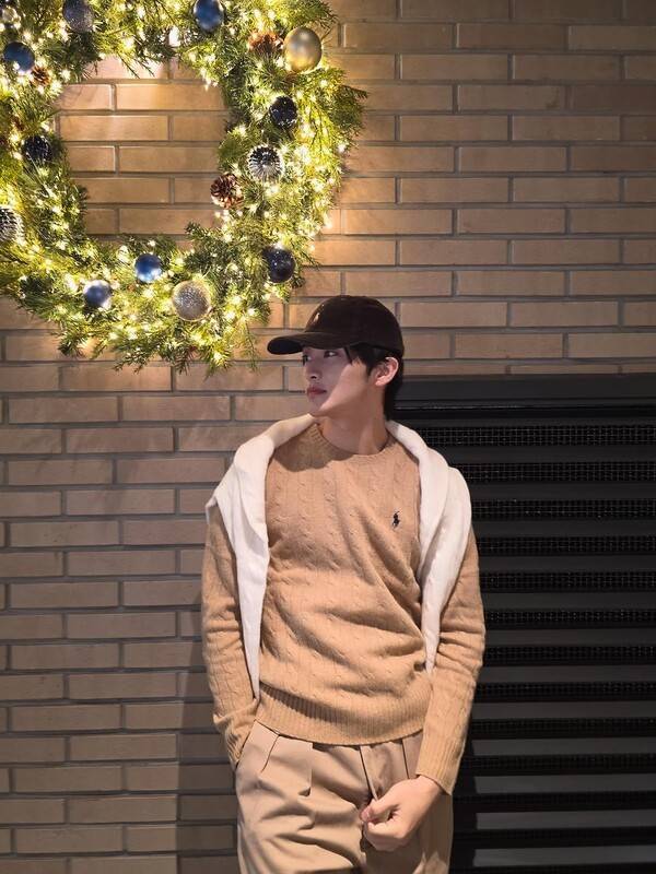 마크의 착장에서는 댄디한 무드가 가장 먼저 눈에 띈다. 그는 베이지 니트와 슬랙스 같은 기본적인 아이템으로 깔끔한 남친 룩을 연출했다. 비슷한 색감의 조합도 톤의 미묘한 차이를 더하면 이렇듯 심심하지 않게 풀어낼 수 있다. 화이트 카디건을 어깨에 둘러 위트를 더한 건 덤. 유사한 색감의 옷들을 배치할 땐, 그의 패션에서 힌트를 얻어보자.