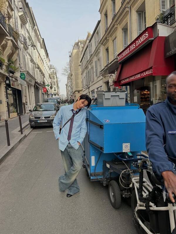 데님과 셔츠의 조합은 언제나 옳다. 특히 아우터의 중요도가 떨어지는 봄에는 그 매력이 더욱 선명해진다. 주연은 라이트 블루 컬러의 셔츠와 워싱이 돋보이는 빈티지 데님으로 정석처럼 느껴지는 조화에 변주를 줬다. 셔츠를 팬츠에 넣지 않고 툭 떨어뜨려 여유로운 실루엣을 강조한 것도 매력적이다. 끝이 아니다. 미니 크로스백으로 편안함을 드러내는 동시에 도트 패턴의 넥타이를 헐렁하게 착용해 디테일을 더하기도 했다.