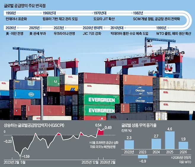 1956년 컨테이너 표준화로 글로벌 물류망이 본격적으로 구축된 이후 세계 기업들은 효율화를 최선의 가치로 놓고 움직여 왔다. 일본 도요타에서 시작된 JIT(just in time·부품 적기 조달)는 세계 제조업의 표준이 됐다.