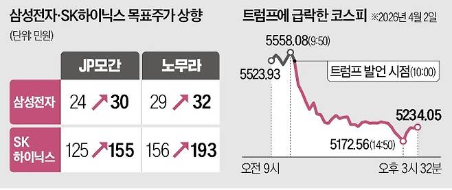 코스피 4% 떨어진 날, 글로벌 IB '삼전닉스' 목표주가 높였다