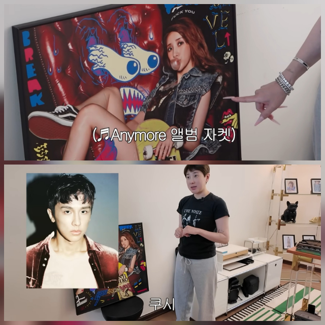 이날 그는 집에 걸린 앨범 자켓을 가리키며 “이거 제가 혼자 회사 차렸을 때 냈던 ‘Anymore’ 앨범”이라고 소개했다. 해당 곡은 당시 프로듀서 쿠시(KUSH)가 참여했던 작업이었다.