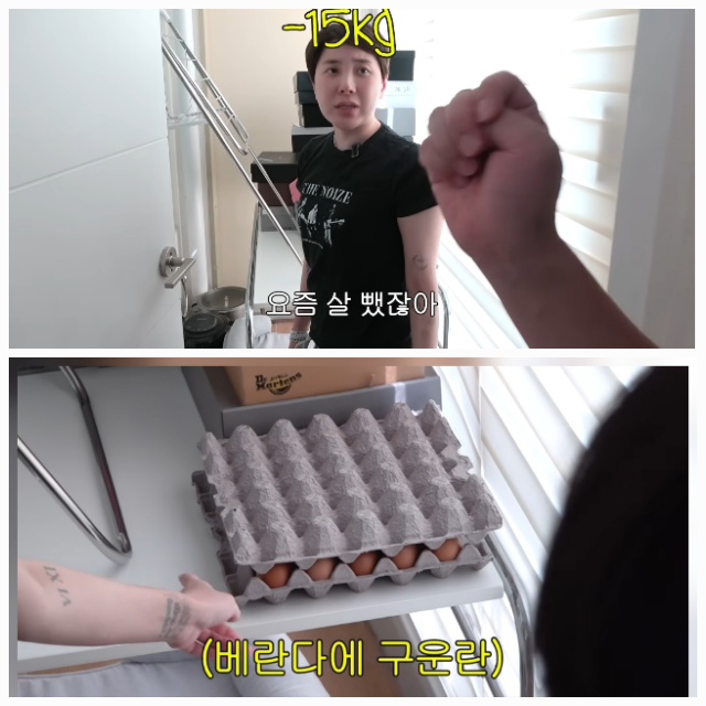 세 번째 영상에서는 일상과 변화가 드러났다. 베란다에 놓인 계란을 가리키며 “계란이 제 주식이다. 요즘 15kg 뺐다”고 말한 그는 구운란과 생식 야채가루로 체중을 감량했다고 밝혔다. 한때 800켤레에 달했던 구두를 정리한 뒤 “아가들 같아서 팔 때 슬펐지만 지금은 훨씬 편하다”고 털어놓기도 했다.