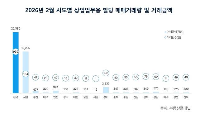 AI 기반 상업용 부동산 종합 플랫폼 기업 부동산플래닛(각자대표 정수민, 엄현포)이 2026년 2월 전국 상업업무용 빌딩 매매거래 시장 분석 결과를 2일 발표했다.