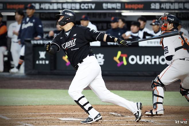 이에 맞선 KT는 최원준(중견수)~김현수(지명타자)~안현민(우익수)~샘 힐리어드(좌익수)~장성우(포수)~오윤석(1루수)~류현인(3루수)~김상수(2루수)~이강민(유격수)으로 이어지는 선발 타순을 구성해 한화 선발 투수 문동주와 상대했다.