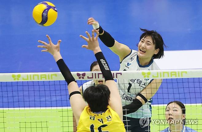 미들 블로커 최가은이 과감한 오픈 공격으로 흐름을 바꾸며 팀 승리를 이끌었다.
