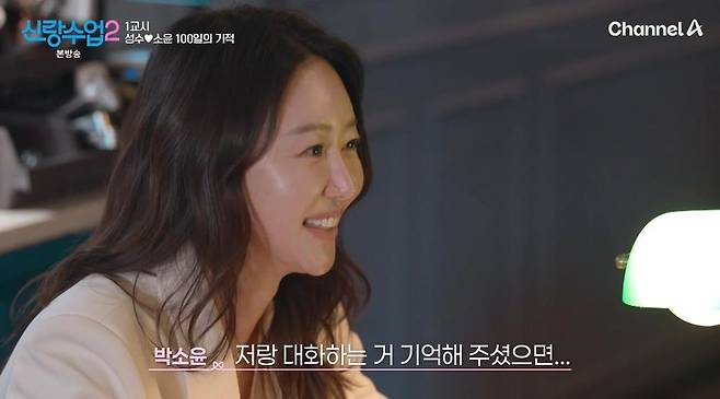 100일을 기념해 식당을 통째로 대관한 김성수는 박소윤에게 "드라마 같은 거 안 봤구나? 사실 메뉴도 고를 필요가 없다"라고 말했고, 박소윤은 "갑자기 드라마 속 여주인공이 됐다"라며 미소 지었다.