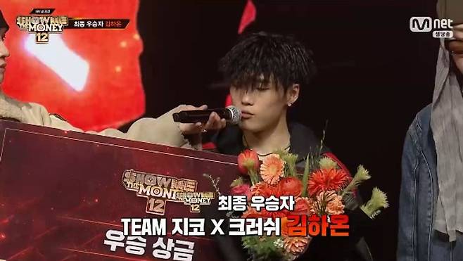 김하온은 "사실 제가 '쇼미더머니'에 나오기로 마음먹은 이후로 지금 이 순간이 제가 생각했던 유일한 시나리오다. 우여곡절이 많았지만 그걸 극복하게 해준 지코와 크러쉬 형에게 모든 영광 돌린다"라며 고마운 사람들의 이름을 호명하며 감사의 마음을 드러냈다.