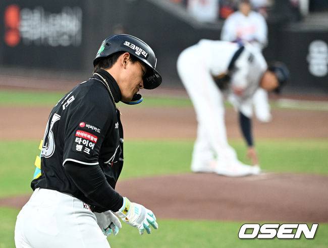 담장을 넘어가는 타구를 확인하자마자 안현민은 고개를 숙이고 그라운드를 돌았다.