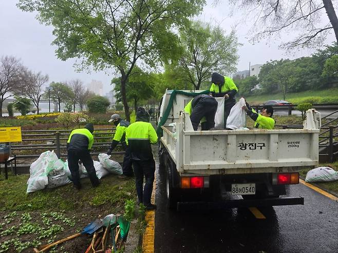 "한파, 폭설, 태풍, 폭우, 폭염, 산불이 일어나면 바로 출동하는 거죠. 태풍이 지나가면 산에 위험한 나무들이 많잖아요. 쓰러지면 사고거든요. 일단 주민들은 등산 못 하게 막아야 돼요. 그런데 위험한 나무들을 누군가는 치워야 하잖아요. 우리가 가는 거죠. 장마철 하수구 막히지 않게 쓰레기랑 담배 제거도 우리가 하죠. 계곡에서 내려오는 모래나 쓰레기들도 제거해 줘야 홍수나 하수시설을 보호할 수 있어요. 일일이 다 삽으로 퍼냅니다. 비 많이 온 다음 날 한강공원 가보시면 나뭇가지, 쓰레기, 펄 이런 게 가득하거든요. 안 치우면 주민들이 다치니깐 청소하는 역할을 우리가 하는 거죠.