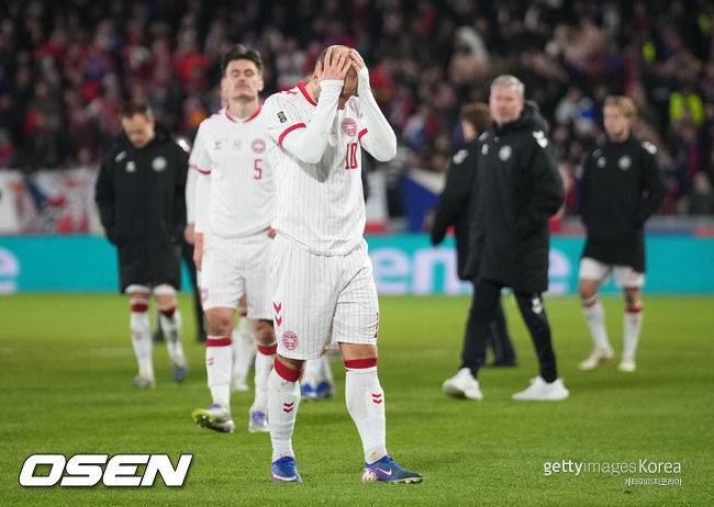 덴마크는 1일(한국시간) 체코 프라하 스타디온 레트나에서 열린 2026 국제축구연맹(FIFA) 북중미 월드컵 유럽 예선 플레이오프 패스 D 결승에서 체코와 2-2로 비긴 뒤 승부차기에서 1-3으로 패하며 고개를 숙였다. 마지막 문턱을 넘지 못했다.