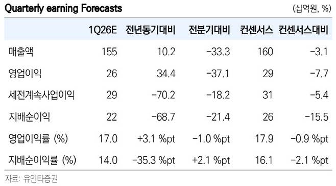 그는 “앨범·음원의 경우 총 앨범 판매량은 75만장 수준으로 전년동기 대비 실적 감소가 불가피할 전망이다. 잇지 멤버 ‘유나’의 솔로 앨범과 트와이스 ‘미사모’ 일본 앨범을 제외한 주력 신보 출시는 전무했다”면서도 “스트레이키즈의 구작 앨범 판매분(약 40만장)이 일부 매출 공백 상쇄 가능할 예정이며, 고연차 IP 서구권 팬덤 확장 및 잇지 음원 역주행 영향으로 견조한 음원 실적 시현이 가능할 전망”이라고 부연했다.