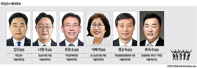[6·3 지선 누가 뛰나-무안군수] 김산 3선 맞서 ‘사실상 본선’ 民 6명 공천 대결