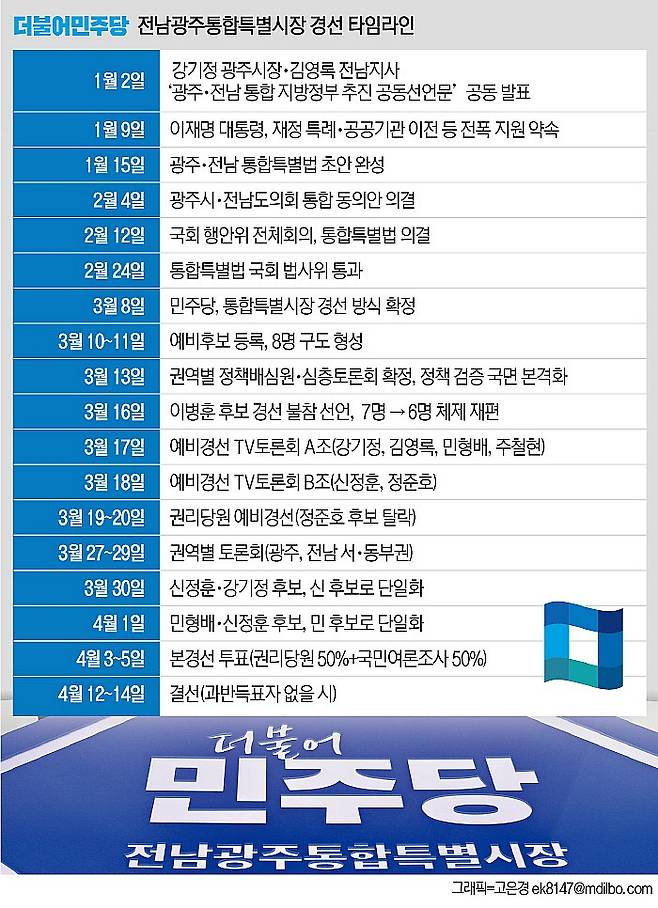광주·전남은 더불어민주당 경선이 곧 본선으로 여겨진다. 오는 7월 출범하는 전남광주통합특별시(약칭 광주특별시) 수장을 선출하는 민주당 경선이 역대 어느 때보다도, 다른 어느 지역보다도 중요한 이유다. ‘민주당 경선 후보가 누가 되느냐’에 따라 통합특별시의 4년과 그 이후가 결정된다.