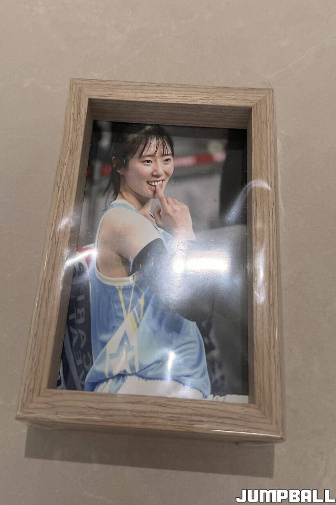 또 하나 꺼내 든 건 액자 사진이었다. 지난 올스타게임 당시 앙탈 챌린지를 했던 장면이 담긴 사진이다. 숙소에는 선물 받은 사진이 수두룩하지만 신이슬은 가장 최근(인터뷰 진행 기준)에 받은 걸 가져왔다.