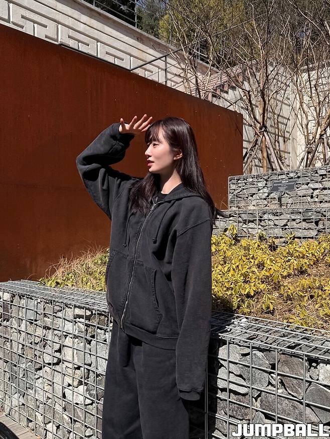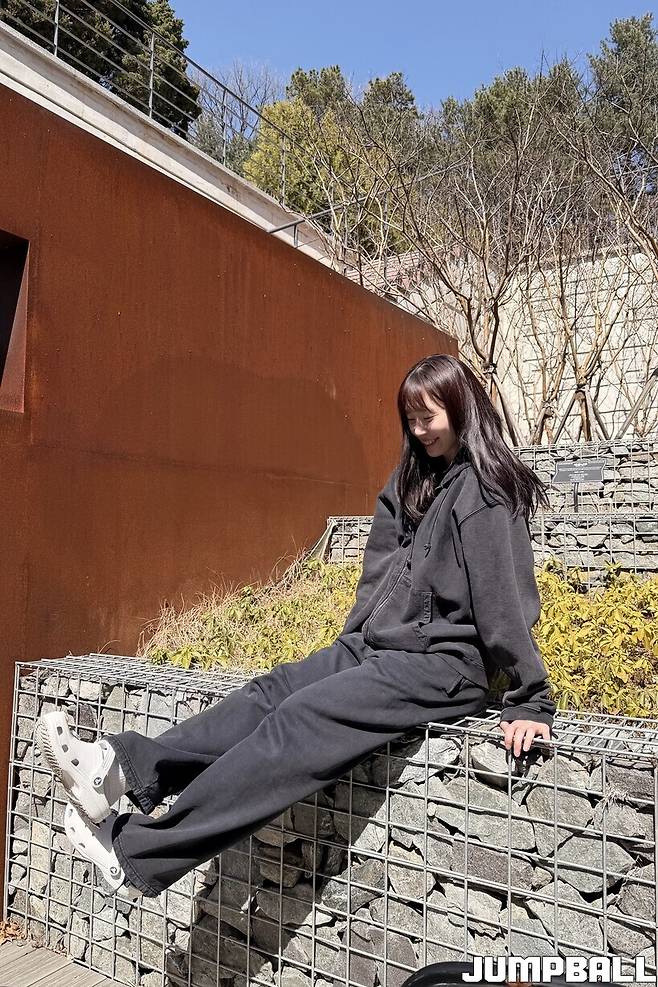 “(고)나연이랑은 대부분 옷을 많이 공유해요. 반팔티도 같이 입은 적 있고 지난번 점프볼 잡지 촬영 때도 나연이 후드티를 입었거든요. 거의 나연이랑 옷 고민을 많이 하고 서로 바꿔 입는 것 같아요.”