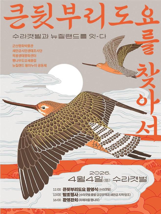 손상된 갯벌, 기후위기로 변동성이 커진 악천후에도 큰뒷부리도요는 여전히 날아온다. 마오리 전승에 따르면 도요새들은 매년 숲과 새의 신인 타네(Tāne)가 이끄는 넓은 길(te ara whānui a Tāne)을 따라 이동하며, 사후 마오리 사람들의 영혼도 그 신성한 길을 따라간다. 4월 4일 우리는 수라갯벌에서 이 새들을 맞이한다.