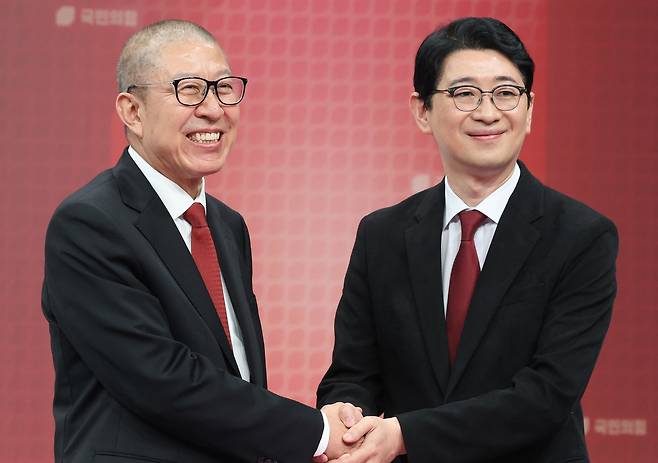 | ▲ 6.3 부산시장 선거 경선에 들어간 국민의힘 소속 박형준 현 부산시장과 주진우(해운대갑) 국회의원. |