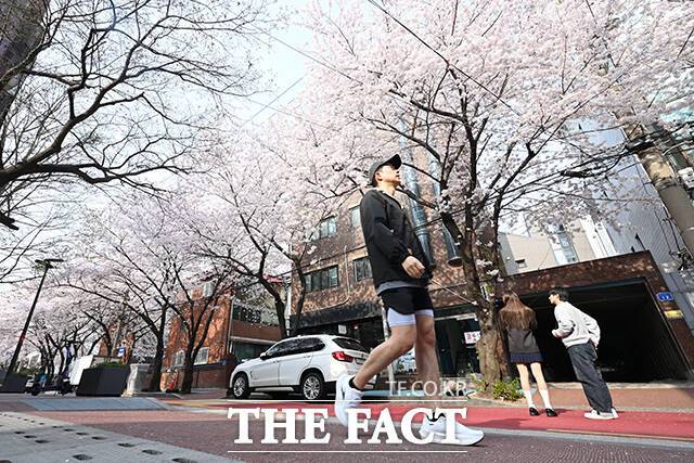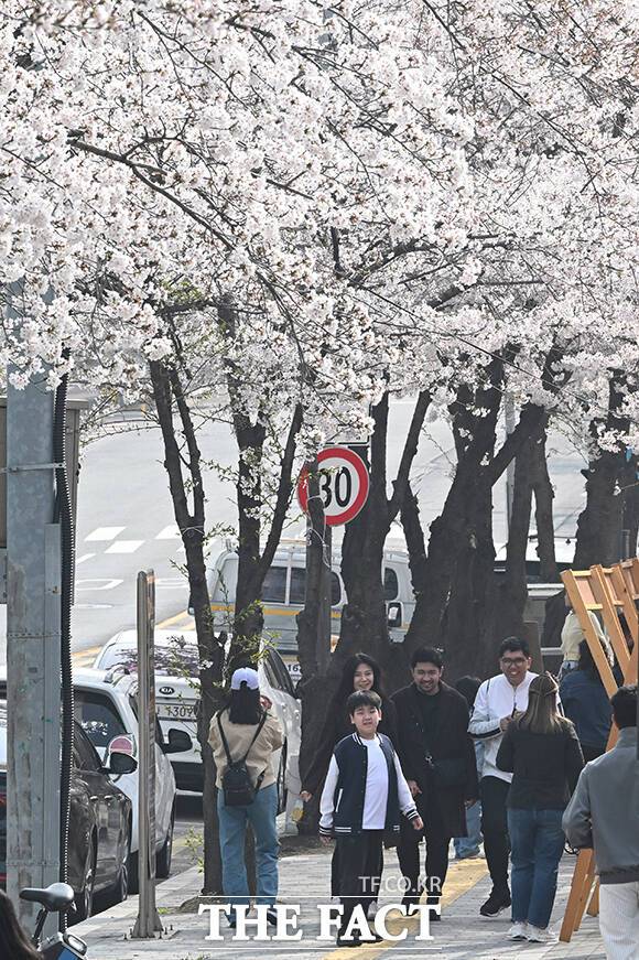 '인증사진 찰칵'…마포 토정로 일대 '벚꽃 만개' [TF사진관]