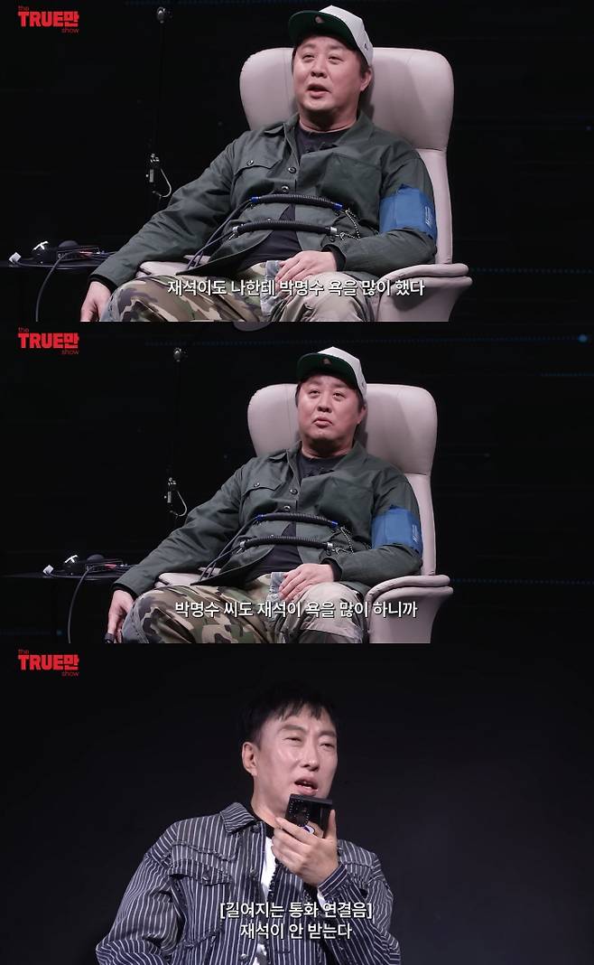 거짓말 탐지기 결과가 '진실'로 나오자, 정준하는 "재석이도 나한테 박명수 욕 많이 했다"고 밝혔다.