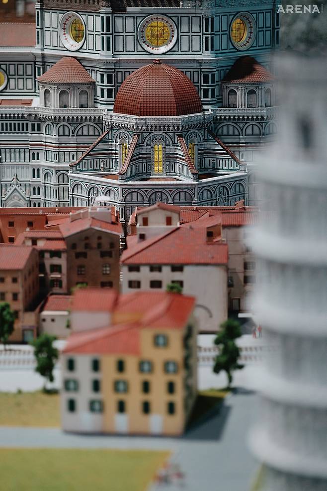 스위스관이 끝나는 곳에 문이 하나 있었다. 이 문을 열고 지나면 스위스관의 두 배에 달하는 공간이 나온다. 올해 초 새롭게 문을 연 이탈리아관이다. 이탈리아 역시 기차와 연관이 깊은 나라다. 실무진은 이탈리아가 '유럽 최초로 고속철도를 개통한 열차 선진국'이라는 점에서 기차마을 테마와 잘 맞아떨어진다고 판단했다. 다만 스위스관에서는 볼 수 없던 광경이 필요했다. 이탈리아를 선택한 두 번째 이유는 '바다'였다. 스위스는 국토 대다수가 산악지대지만, 이탈리아는 삼면이 바다로 둘러싸인 반도 국가다. 물론 이탈리아에도 돌로미티산맥 같은 유명한 산들이 있지만, 스위스에서는 볼 수 없는 해안 풍경을 연출할 수 있었다. 이탈리아관은 로마, 베네치아, 나폴리, 피렌체, 피사 등 도시별로 공간이 나뉘어 있다. 그중에서도 가장 인상 깊었던 공간은 폼페이. 스위스관에 마테호른이 있다면, 이탈리아관에는 폼페이 화산이 있다. 심지어 폼페이 화산은 4D로 완성됐다. 높은 산을 미니어처로 만들 때는 나무와 철사로 뼈대를 잡고, 그 위에 우레탄과 시멘트를 덮어 완성한다. 하지만 폼페이 화산은 조명을 추가로 설치해 실제로 용암이 흐르는 장면을 연출했고, 관람객 동선에는 진동 패드를 설치해 지진이 났을 때의 감각을 물리적으로 재현했다. 놀라운 점은 여기서 끝나지 않았다. 로마 콜로세움, 피렌체 대성당, 피사의 사탑, 리오마조레 해안 마을, 나폴리항에 정박한 크루즈, 베네치아의 리알토 다리까지. 우리가 익숙하게 알던 이탈리아의 랜드마크가 완벽하게 재현되어 있었다. 콜로세움에 들어선 수백수천 명의 사람들은 누구 하나 똑같은 동작 없이 저마다 검투사에 열광하고 있었다. 노종오 주무관은 이탈리아관 안에서도 가장 좋아하는 곳으로 바티칸 시스티나 경당을 꼽았다. 실제 시스티나 경당에는 미켈란젤로가 완성한 '천지창조' '최후의 심판'이 있다. 실무진은 이 디테일을 놓치고 싶지 않았지만, 관람객을 그 안에 들어가게 할 수는 없었다. "그래서 이걸 준비했습니다." 노종오 주무관이 버튼을 누르자 웅장한 오케스트라 곡이 울리더니 경당 지붕이 활짝 날개를 펼치며 벽화와 천장화를 드러냈다. 디테일도 디테일이지만, 디오라마를 완성할 때 가장 어려운 부분은 따로 있다. 바로 역설계다. 해안가 마을은 물론이고 폼페이 화산이나 마테호른 같은 자연 풍경은 설계도가 없다. 때문에 오직 현장에서 촬영해온 사진을 보고 그 풍경을 재현해야 한다. 노원기차마을 속 세계관은 실제 세계의 1:87 비율로 완성됐다. 1:87 비율에도 이유가 있다. 기차 미니어처는 대부분 'HO 스케일'이라 부르는 1:87 비율로 완성되기 때문에 그 주변 건물들 역시 같은 비율을 적용한 것이다. 모든 관람을 마치고 노종오 주무관에게 물었다. 기차의 매력은 뭘까요? 그는 처음 인사를 건넬 때와 같은 미소를 띤 채로 답변을 건넸다. "전 고향이 부산입니다. 처음 공무원 시험을 보러 서울에 가던 날, 새벽 일찍 기차를 탔어요. 여러모로 불안하고 초조했죠. 저 나름대로 새로운 세계에 발을 딛는 거였으니까요. 지금은 아이들과 함께 부산으로 갈 때 기차를 탑니다. 돌이켜보면 제 인생에서 가장 중요한 순간, 행복한 순간에는 기차가 있었죠. 이제는 오래된 소꿉친구처럼 느껴집니다." 돌이켜보면 기차에서만 느끼는 기분이 있었다. 덜컹거리는 열차 안에서 빠르게 흘러가는 풍경을 바라볼 때의 기분, 열차가 멈출 때마다 새롭게 타고 내리는 사람들을 구경할 때의 기분, 조금씩 목적지에 가까워질 때마다 그곳에서 보낼 하루를 상상할 때의 기분. 노원기차마을 안을 달리던 자그마한 기차들을 볼 때도 그 비슷한 기분을 느꼈다. 촬영을 마치고 사무실로 돌아오는 길. 1993년에 쓰였다던 일본 철도 광고가 생각났다. 어슴푸레한 저녁 철길을 달리던 기차 사진 아래에는 이렇게 적혀 있었다. '사랑이라든지, 용기라든지, 보이지 않는 것도 함께 타고 있다.'