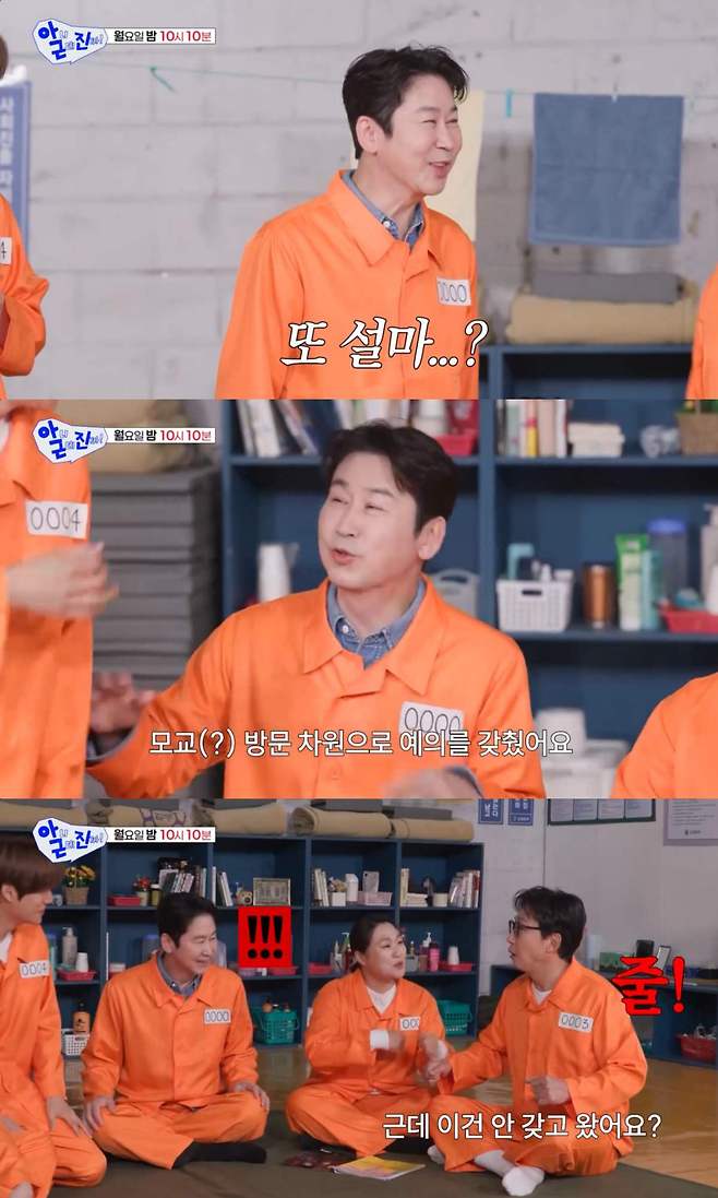 신동엽이 과거 구치소 수감을 연상하게 만드는 복장으로 '아니근데진짜'에 출격했다.